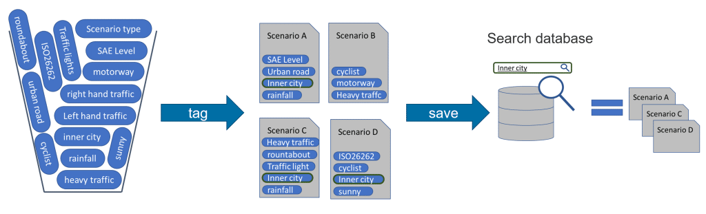 The amount of information encountered around a vehicle is very complex and extensive. There are two main challenges in creating a catalog of driving scene tags for autonomous vehicles. Firstly, we need to detect, classify, locate, and label various types of information in different driving scenarios, ranging from busy city streets to quiet country roads. There are countless variations in road layouts, traffic patterns, and environmental conditions. Each scenario requires specific tags and annotations for the autonomous vehicle to understand what’s happening. The second challenge is how we organize all the available tags in a standardized way so that we can use the right and relevant data when needed to develop and test specific autonomous driving features.